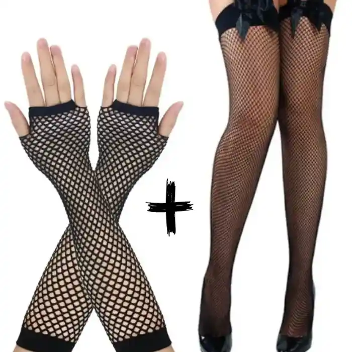-Medias De Malla Con Moño Negro Lenceria De Encaje: MEDIAS DE MALLA CON MOÑO LENCERIA ENCAJE Medias en malla con moño media pierna (se puede utilizar el moño adelante o atrás). Las medias son un plus de sensualidad para tus prendas perfectas para complementar tu lencería o disfraz favorito. Lúcete con tu pareja. CARACTERÍSTICAS DESTACADAS Material: nailon y elastano. Talla: única (para adulto) Medias de malla con moño (se puede usar el moño adelante o atrás). -Guantes Negro De Malla Lenceria Sexy: Guantes largos sin dedos de malla de red para chicas, vestido Sexy de fiesta y Club, calentador de brazos, baile gótico, Lolita, Punk, disfraz de lujo 100% nuevo y de alta calidad. Material: LICRA + nailon Patrón: Diseño de Red Color: Negro. Recibes: -Medias De Malla Con Moño Negro Lenceria De Encaje. -Guantes Negro De Malla Lenceria Sexy.