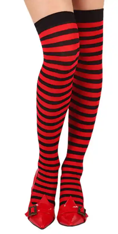 Medias En Liguero, De Dama, Rayado Roja Con Negro - Halloween