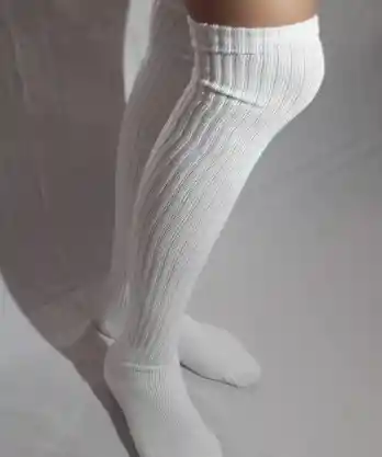Medias Escolar Maraton Talla 8-10 Blanca Resortada Hasta La Rodilla