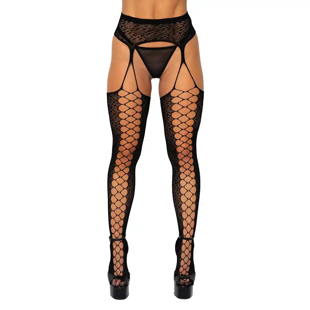 Transforma tu look con las medias Lunel, una pieza única de lencería que combina un diseño sensual con comodidad. Con su malla de red de gran calidad y un patrón de rombos y círculos entrelazados, estas medias son ideales para realzar tus piernas con un estilo elegante y provocador. Diseño: Malla de red con un patrón de rombos y círculos que atraviesa las piernas, creando una silueta impactante y sofisticada. La parte superior tiene un detalle de liguero que realza aún más la figura. Comodidad: Su material elástico se adapta perfectamente a tus piernas, ofreciendo un ajuste seguro y cómodo mientras resalta tus curvas de manera natural. Sensualidad: El diseño audaz de las medias Lunel es ideal para elevar cualquier conjunto de lencería, dándole un toque de sofisticación y sensualidad, perfecto para momentos especiales. Con las medias Lunel, te sentirás empoderada, sexy y lista para impresionar. Un accesorio imprescindible para resaltar tu belleza de forma única. Características: • Marca: Lerot • Material: 96% elastano / 4% Spandex • Talla: Única • Color: Negro *No incluye el panty* Cuidado: Lavar a mano o en el proceso de prendas delicadas. Por ser un producto de uso íntimo no tiene cambio y su garantía solo es vigente por defectos de fabricación
