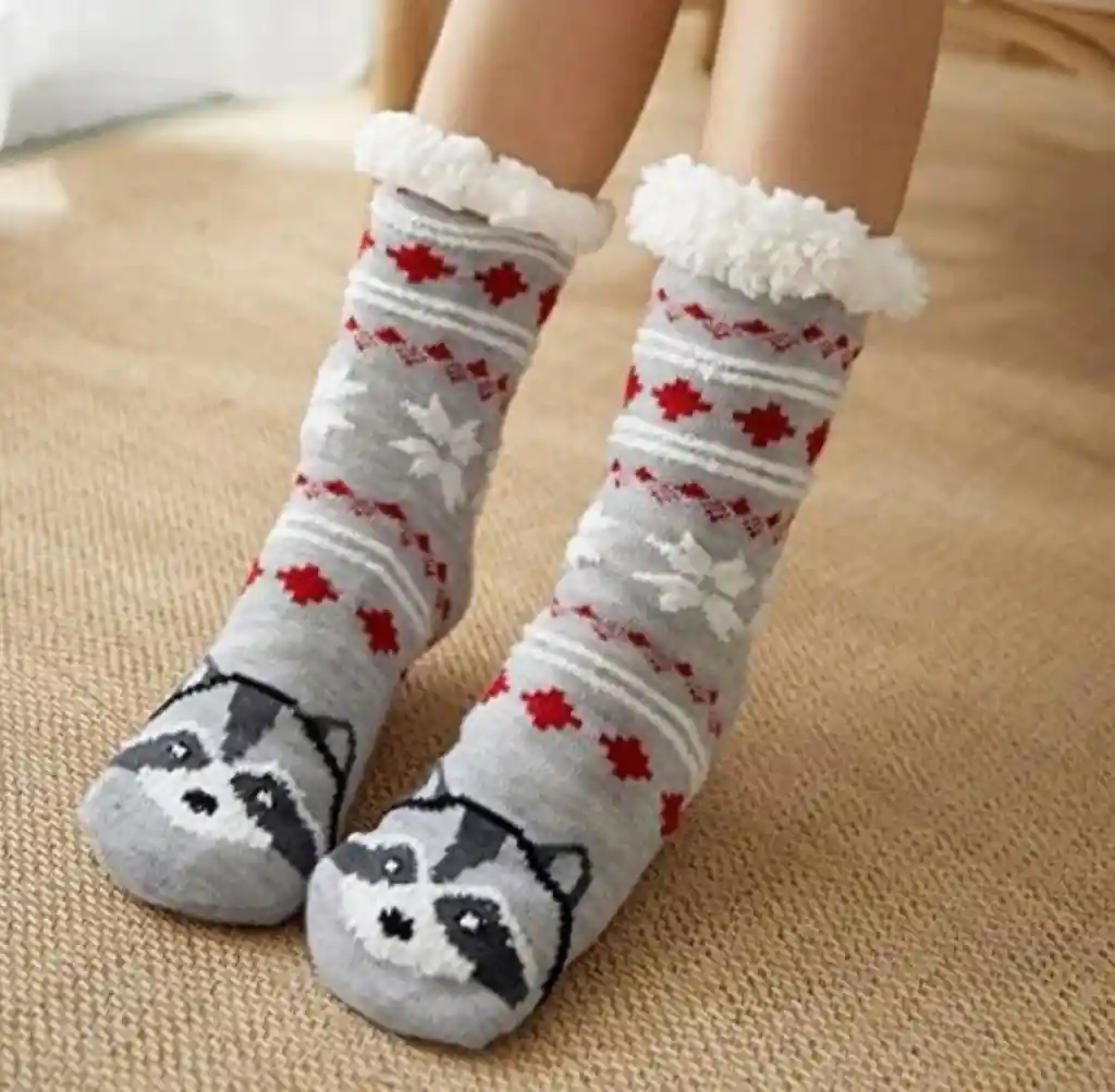 Medias térmicas forradas en ovejero con antideslizantes en la planta de los pies, son medias tipo babucha; además son ideales para descansar, calentarte y relajar tus pies. Colores: Grises, blancas y rojas