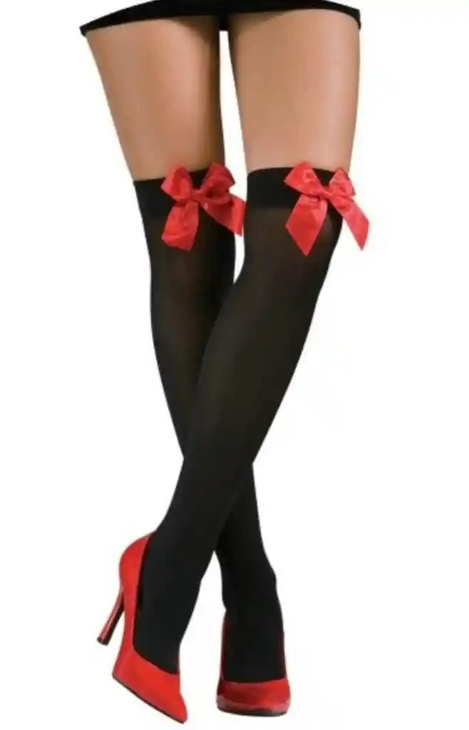 MEDIAS VELADAS LIGUERA LISA NEGRA CON MOÑO ROJO COD.2260