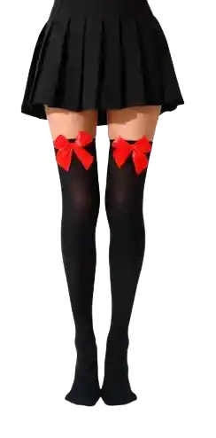 Medias Veladas Liguero Negras, Con Moño Rojo - Halloween