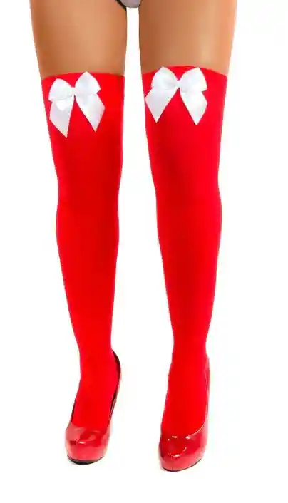 Medias Veladas Liguero Rojas, Con Moño Blanco - Halloween