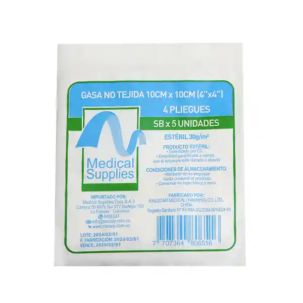 Medical Supplies Gasa Esteril no Tejida 10 x 10 cm