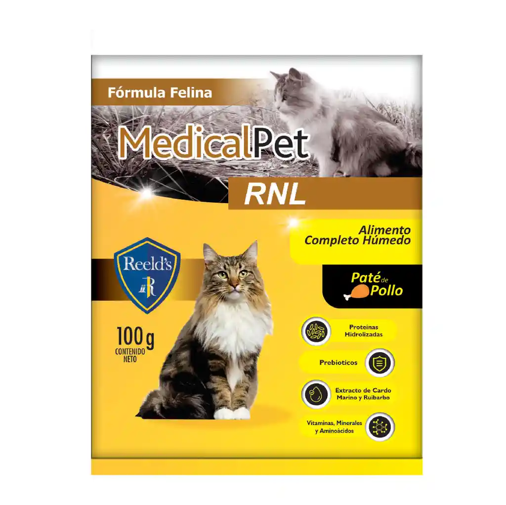 Alimento natural húmedo, nutricionalmente balanceado, hipoalergenico (proteinas hidrolizadas), altamente palatable y con extractos naturales que protegen las funciones vitales del organismo. Diseñado para dar soporte nutricional a gatos con trastornos renales.