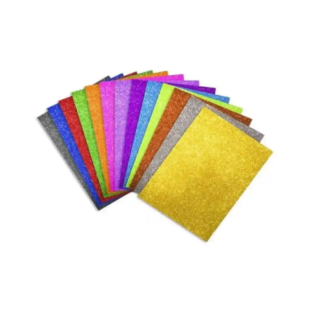 Foamy escarchado en medio pliego ideal para manualidades, proyectos escolares y decoración con acabado brillante y fácil manipulación.