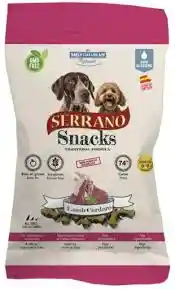 Los Serrano Snacks SUPER PREMIUM Training de MEDITERRANEAN NATURAL, delicadamente cortados en pequeñas cantidades con forma de huesito, garantizan la seguridad de la mascota, mantienen su pureza y todos los nutrientes, reflejan la dieta natural y contienen al menos 70 % de carne (69% en “Serrano Snacks for puppies”). Elaborados con materias primas exentas de gluten, no contienen colorantes artificiales, transgénicos ni ácidos grasos trans. Son un producto hipoalergénico (excepto los sabores “salmón y atún” y “for puppies”) fuente natural de ácido oleico. Los Serrano Snacks de salmón y atún aportan Omega 3 y 6. Son el snack perfecto para premiar el comportamiento de su mascota. Muy alta palatabilidad. Ideales en el adiestramiento. Sabor disponible Cordero y Jamon serrano.... En tamaño de 85gr y 100gr Composición: 46% jamón serrano, 28% carne de cordero,arroz, glicerina vegetal, guisantes, aceite de girasol, minerales. Aditivos: conservantes: ácido propiónico, formiato de calcio, ácido cítrico. Aromatizantes: aceite de orégano. Componentes analíticos: Proteína: 26,9%, grasa bruta: 8.6%, ceniza bruta: 10,7%, fibra: 1%, humedad: 21.3%, 311 Kcal/100g., omega 6: 0.89g/100g, omega 9: 1.79g/100g Dosificación diaria: Ofrezca a su mascota algunas unidades como premio, úselo como ayuda para educación y entrenamiento.