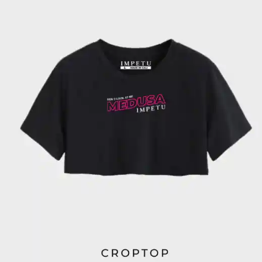 Croptop con horma slim fit, algodón 100% peruano y con estampado frontal. Tecnica: serigrafía.