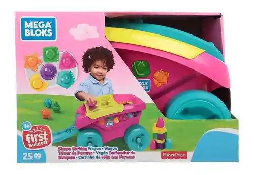 Une los bloques de construcción de formas especiales con su silueta en el clasificador, para que pasen haciendo ruido al contenedor del vagón, usa el asa fácil de sostener para rodar el vagón con sus enormes llantas, llevando tus bloques por donde vayas.