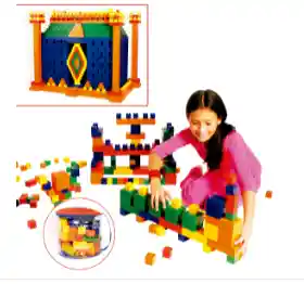 Contenido: Piezas elaboradas en polipropileno Colores: amarillo, azul, rojo, verde y naranja 190 Cubos pequeños de 3x3x3 cms 65 Cubos grandes de 6x6x6 cms 45 Rectángulos de 12x3x6 cms Empacado en estuche con cremallera.