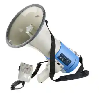 otencia de salida (RMS): 25 vatios,Alto rendimiento: 50 vatios • Reproductor MP3 integrado:reproduce música desde una tarjeta SD y una memoria USB de hasta 32 GB (cada uno no incluido) • 3 LED de estado para control operativo: Hablar, Grabar y reproducir nconfundible a una distancia de hasta 600 metros • 50 vatios de potencia máxima • Reproductor MP3 integrado • Con grabadora de voz Megáfono con sirena y reproductor MP3 integrados • De largo alcance:hasta 600 metros • Clip de sujeción para micrófono • Fuente de alimentación: 8 pilas tipo C (pedir por separado) Grabadora de voz para hasta 16 segundos de grabación • Micrófono externo con interruptor de encendido / apagado,Botón de hablar, Botón de grabación para grabación de voz, Botón de sirena y control de volumen • Interfaces: AUX (conector de 3,5 mm), Ranura para tarjetas SD, Puerto USB tipo A • Dimensiones (Ø x L): 22,8 x 35 cm, Peso: 1038 g Contiene Megáfono Recargable baterías recargables cordón de transporte