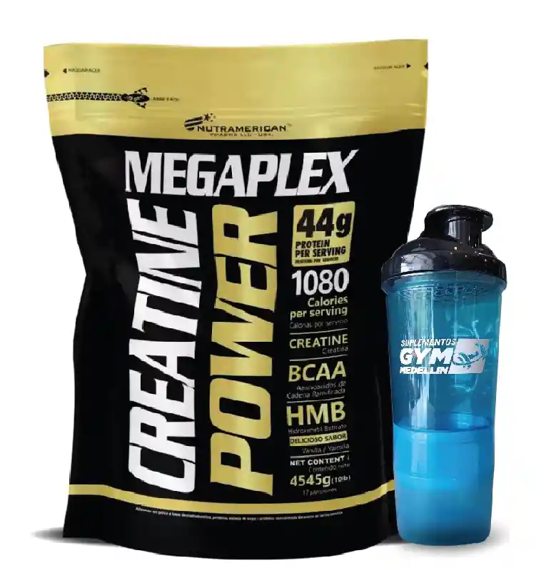 Megaplex Creatine Power 10 Libras Nueva Fórmula Megaplex Creatine Power es la Mejor Proteína de Suero. Hipercalórica Que Incluye en su Innovadora Fórmula 3000 mg de Creatina. Hmb. Bcaa. 44G de Proteína . 1050 Calorías Por Porción y Fuentes de Carbohidratos Con Diferentes Velocidades de Absorción. Uso Sugerido: Mezcle Megaplex Creatine Power 265G (3.5 Medidas/Cucharadas) en 300Ml de Agua o Leche Descremada. Consúmalo Inmediatamente Después de Entrenar y Antes de Dormir. Si su Entrenamiento es Nocturno. Úselo Después de Entrenar y Con el Desayuno. Para Aumento de Peso no Reemplace Ninguna Comida Con Este Producto. Incluye Medidor (Cuchara Dosificadora) .