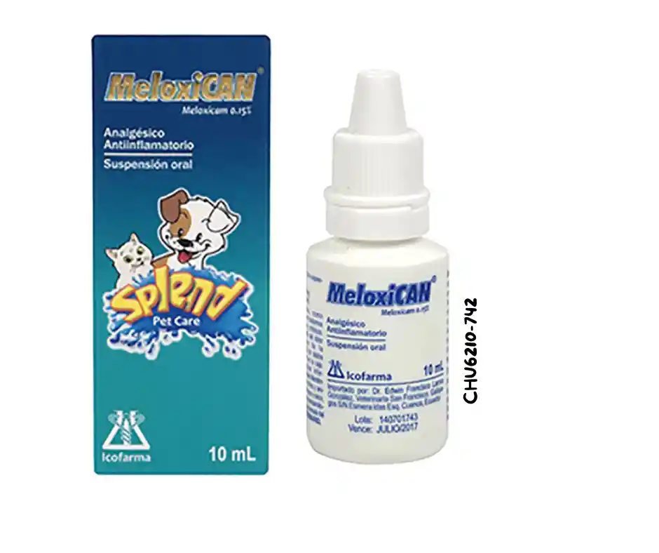 Descripción del producto SPLEND MELOXICAN. Suspensión terapéutica, antipirético, analgésico, antiinflamatorio no esteroide ni narcótico, a base de meloxicam. Indicado en perros como analgésico y antiinflamatorio en trastornos músculoesqueléticos agudos y crónicos. En la reducción de la inflamación y el dolor pre y post operatorio tras cirugía ortopédica y de tejidos blandos. MELOXICAN, en gatos para el tratamiento del dolor post operatorio después de la ovariohisterectomía (OVH) o cirugía de tejidos blandos. MELOXICAN, por ser un AINES también posee acción farmacológica en cuadros febriles. MELOXICAN, es un potente antiinflamatorio en todos los modelos estándares de inflamación con bajo potencial ulcerogénico.