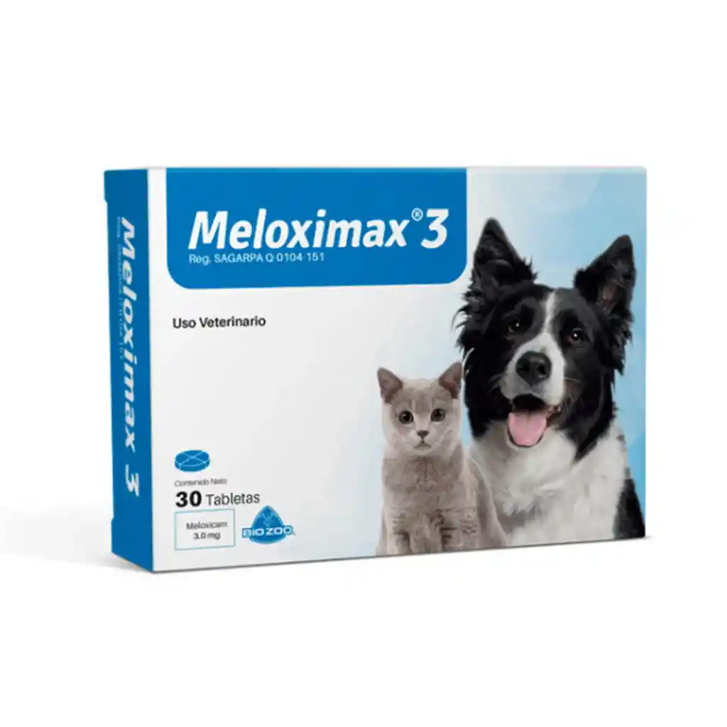NOMBRE DEL PRODUCTO: MELOXIMAX 3 MG X 30 TABLETAS ANTIINFLAMATORIO – BIOZOO DESCRIPCIÓN: Antiinflamatorio no esteroideo (AINE) formulado con meloxicam, indicado para el tratamiento del dolor e inflamación en perros, especialmente en casos de osteoartritis, afecciones musculoesqueléticas o dolor postoperatorio. Brinda alivio sostenido con una sola dosis diaria. PRESENTACIÓN: Envase x 30 tabletas de 3 mg VÍA DE ADMINISTRACIÓN: Oral USO: Veterinario CONDICIONES DE USO: Uso exclusivo en perros y bajo supervisión veterinaria. No administrar en gatos, ni en animales con enfermedades gastrointestinales, hepáticas o renales. Conservar en un lugar fresco y seco.