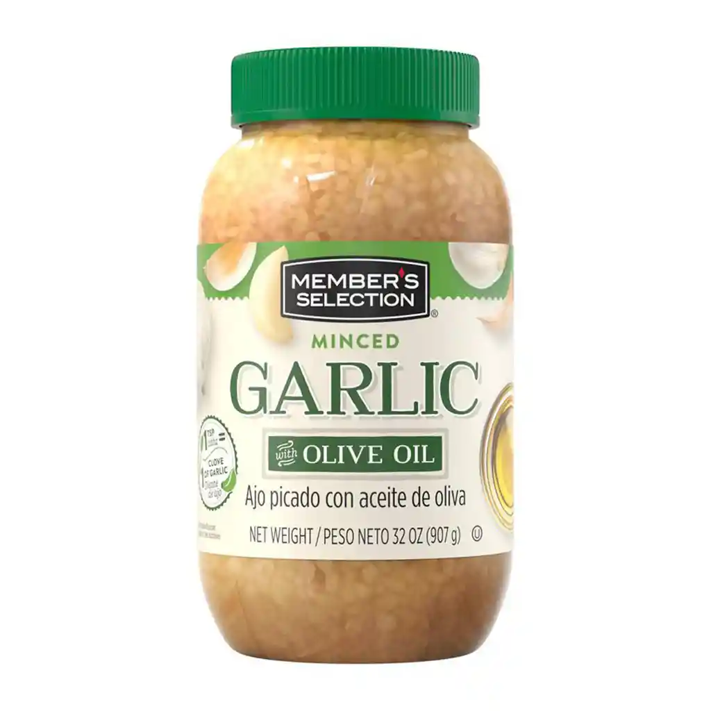 El Member's Selection Ajo Picado Minced Garlic in Olive Oil es una opción práctica y versátil para realzar el sabor de tus comidas sin esfuerzo. Elaborado con ajo finamente picado y conservado en aceite de oliva, aporta un sabor intenso y auténtico ideal para carnes, pastas, arroces, salsas y salteados. Además de su valor gastronómico, el ajo es reconocido por sus propiedades antioxidantes y beneficios para la salud cardiovascular. Su presentación lista para usar facilita la cocina diaria, ahorrando tiempo sin sacrificar sabor ni calidad en cada preparación.