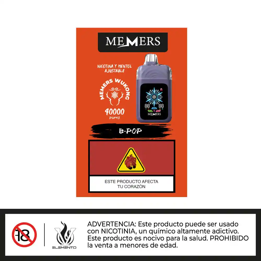 El Memers 40000 Puffs es un vape desechable diseñado para ofrecer una experiencia prolongada sin complicaciones. Con una capacidad para hasta 40,000 inhalaciones, garantiza un uso extendido antes de desecharlo. Su diseño compacto y ergonómico facilita su manejo, mientras que su sistema integrado asegura un rendimiento constante y estable durante toda su vida útil. Características: 40000 Puffs Batería integrada de 1100mAh Capacidad 20ml Pantalla LCD 3 Niveles ajustables de nicotina ( 30mg, 40mg, 50mg) 5 Niveles ajustables de mentol.