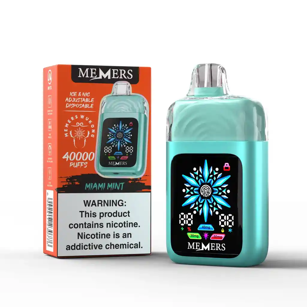 Miami Mint (Menta de Miami): Un sabor a menta muy limpio y puro, ideal para un vapeo fresco y neutro. Lleva tu experiencia de vapeo desechable a una nueva dimensión con el Memers Wukong 40000. Inspirado en la leyenda del Rey Mono, este dispositivo no solo ofrece una duración titánica de hasta 40,000 puffs, sino que te da el control absoluto sobre tu vapeo. Lo que distingue al Memers Wukong es su avanzada tecnología de personalización: es uno de los primeros en el mercado en permitirte ajustar el nivel de nicotina (3 niveles) y el nivel de frescor (6 niveles de mentol), permitiendo hasta 18 combinaciones únicas para cada sabor. Toda esta potencia y control se manejan a través de su pantalla táctil a color dinámica, que no solo muestra los indicadores de batería y líquido, sino que también permite realizar ajustes con facilidad. Con su batería recargable de 1100 mAh y su sistema de triple resistencia de malla (Triple Mesh Coil), el Memers Wukong 40000 garantiza un rendimiento superior, sabor puro y una nube de vapor consistente de principio a fin.