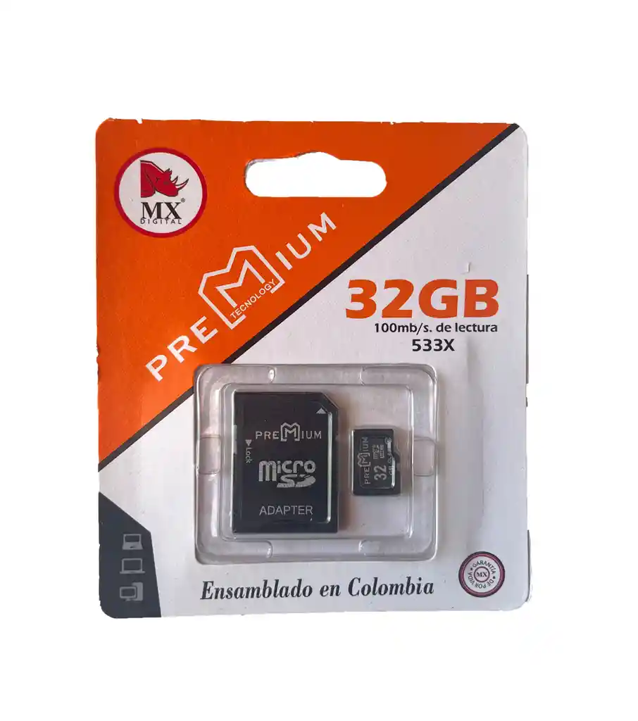 Memoria Micro SD con adaptador a SD de 32 GB de almacenamiento.