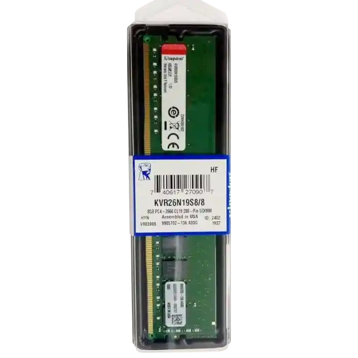 Módulo de memoria RAM Kingston DDR4 de 16GB con velocidad de 2666MHz, ideal para mejorar el rendimiento de computadoras de escritorio. Ofrece mayor fluidez en multitarea, aplicaciones pesadas, juegos y productividad general. Producto original, confiable y de alta calidad. 🔍 Características principales Capacidad de 16GB Tipo de memoria: DDR4 Velocidad: 2666MHz Estandar: PC4-21300 Voltaje: 1.2V Formato DIMM para PC de escritorio Excelente estabilidad y rendimiento Compatible con una amplia gama de placas madre 🔌 Especificaciones técnicas Marca: Kingston Tipo: DDR4 Capacidad: 16GB Velocidad: 2666MHz Formato: DIMM (PC de escritorio) Estado: Nuevo – Original ⚠️ Recomendaciones Verificar compatibilidad con la placa madre (frecuencia y soporte DDR4) Instalar con el equipo apagado Para mejor rendimiento, usar con módulos iguales en dual-channel
