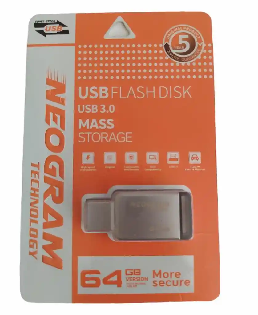 Memoria Usb de 64 Gb USBFLASHDISK NEOGRAM TECHNOLOGYDiseño compacto y ligeroRapidez característica de USB 3.1.USBFLASHDISK es una unidad Flash USB ligera, el compacto diseño de esta unidad complementa cualquier dispositivo compatible. La rapidez de la unidad USB 3.1 Gen 1 (USB 3.0) garantiza la transferencia rápida y sencilla de música, vídeo y mucho más. Retrocompatible con puertos USB 2.0.