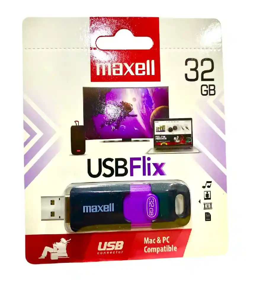 Memoria USB Flix 32 gb maxel 2.0 USB, Ideal para que puedas transferiir imagene, musica, documentos y otros entre computadores, tablets y dispositivos inteligentes esta USB te permitira almacenar hasta 32 GB