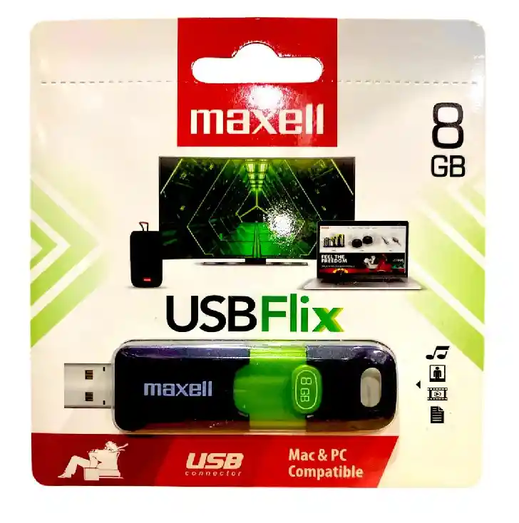 Memoria Usb Flix 8 Gb Maxel 2.0. Ideal para que puedas transferiir imagene, musica, documentos y otros entre computadores, tablets y dispositivos inteligentes esta USB te permitira almacenar hasta 8 GB