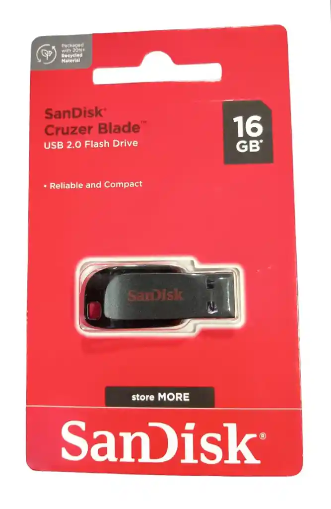 Características: Diseño compacto para máxima eficiencia. La unidad flash USB Cruzer Blade presenta un diseño compacto que cabe fácilmente en un bolsillo o un bolso para la computadora. Esta unidad USB tiene un diseño elegante en rojo y negro que combina con muchos dispositivos electrónicos. • Capacidad: 16 GB • Interfaz: USB 2.0 • Conector: USB-A • Compatibilidad: USB 2.0