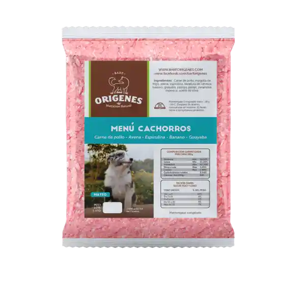 Alimento completo y balanceado, apto para perros de cualquier raza entre 45 días a los 9 meses de edad. Elaborado a base de pollo, enriquecido con verduras, frutas, fibras, aceites y suplementos. Sin colorantes, azucares, harinas cárnicas ni saborizantes.