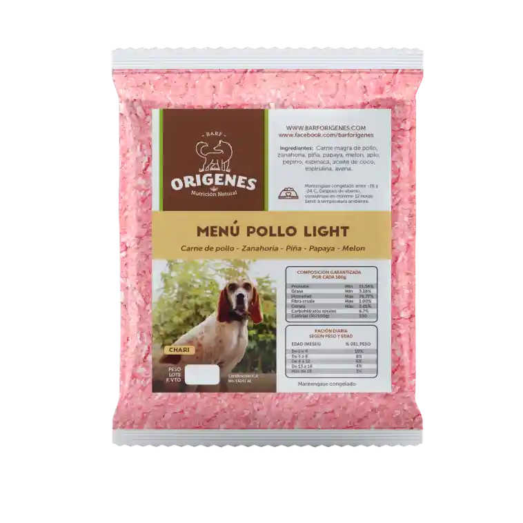 Alimento completo y balanceado, apto para perros de cualquier edad y raza. Elaborado a base de carne de pollo magra, enriquecido con verduras, frutas, fibras, aceites y suplementos. Ideal para perros obesos o con problemas articulares. Apto para perros SENIOR. Fácil digestión. Sin colorantes, azucares, harinas cárnicas ni saborizantes.