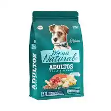 El concentrado Menú Natural Pollo y Salmón de Italcol es un alimento seco, catalogado como holístico y súper premium, diseñado para perros adultos de todas las razas (hasta 30 kg), que prioriza los ingredientes naturales y evita los conservantes artificiales