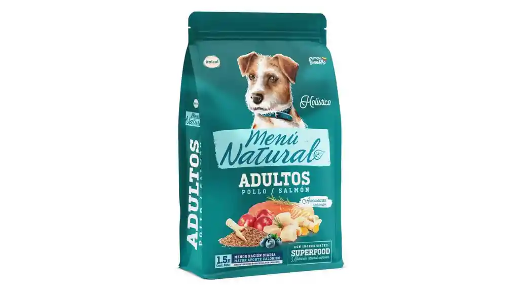 Menú Natural Pollo y Salmón es un alimento completo y balanceado para perros, formulado con pollo y salmón como fuentes principales de proteína de alta calidad. Su fórmula natural sin conservantes ni colorantes artificiales está diseñada para promover una nutrición óptima, favorecer la salud digestiva, mantener una piel y pelaje saludables, y brindar energía y bienestar general a perros de todas las razas y etapas de vida.