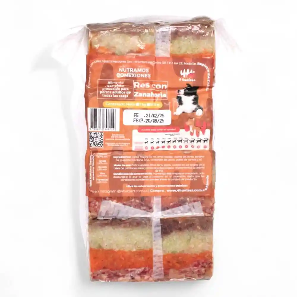 Descubre el Menú Res con Zanahoria de 4Hunters: un alimento natural y balanceado para perros de todas las edades. Con carne magra de res, arroz y vegetales frescos, es una opción saludable y deliciosa. Sin conservantes ni aditivos. ¡Nutrición premium para tu mascota!»