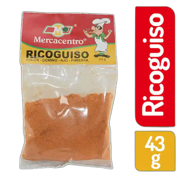 Mercacentro sazonador ricoguiso, presentación en bolsa con 43 g.