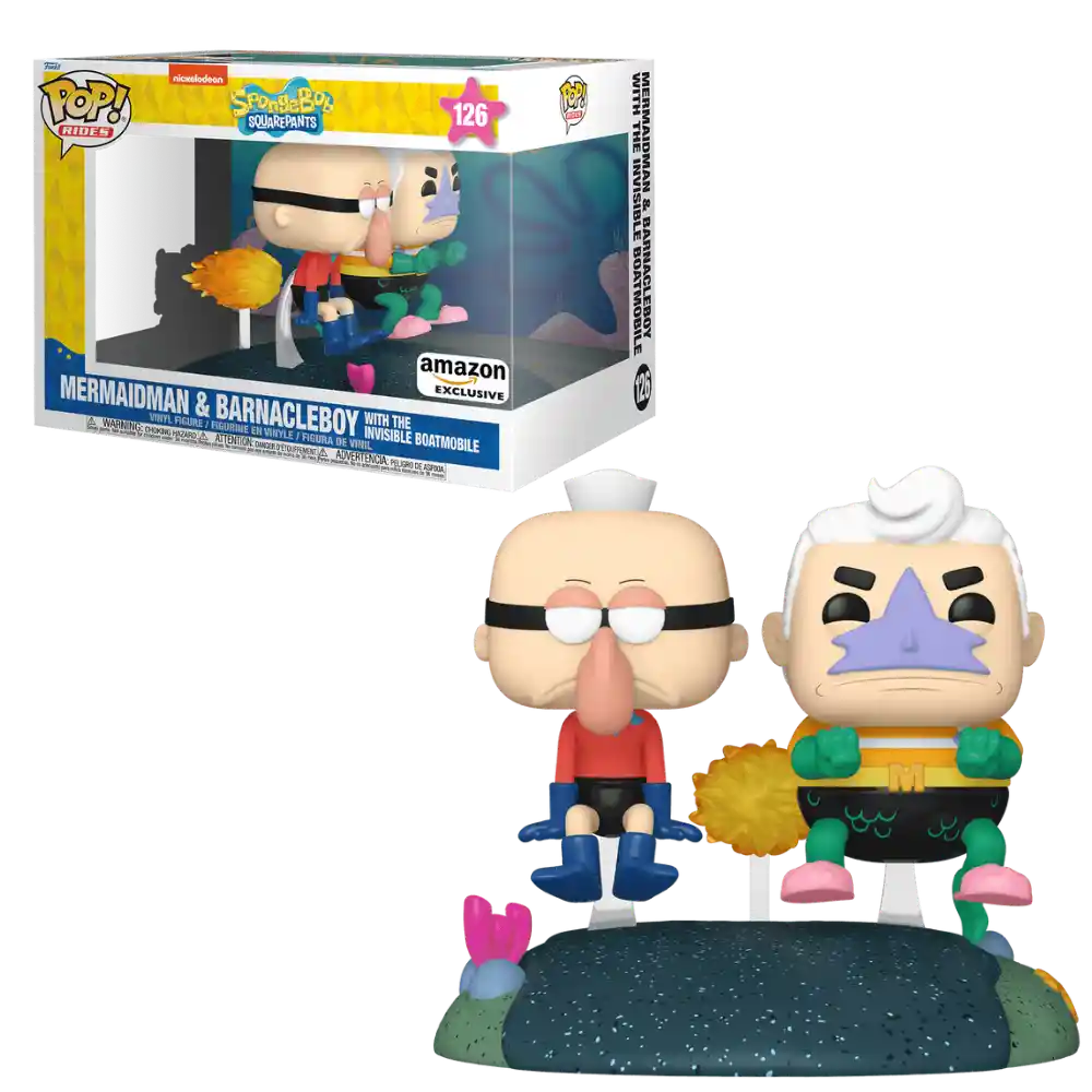 Nickelodeon Funko Pop! Mermaidman & Barnacleboy with the Invisible Boatmobile - Coleccionable Oficial | Nickelodeon Perfecta para fans auténticos de Bob Esponja! Este Funko Pop de Sirenoman y Chico Percebe con el bote invisible captura todos los detalles de tu personaje favorito en un diseño único y lleno de estilo. Exclusivo Amazon. Regalo ideal para un verdadero fan! Colecciona todos los personajes de Nickelodeon y completa el Funkoverso! 🌟 ¿Por qué comprar en Nighty Night? ✅ Original 100% licenciado – Garantía Funko con código de autenticidad (#889698845724). ✅ Envíos express a Bogotá, Medellín, Cali y toda Colombia (¡Consulta si aplica envío gratis!). ✅ Regalo perfecto para cumpleaños, Navidad o amantes de Bob Esponja. ✅ Precio competitivo – ¡La mejor relación calidad-precio en coleccionables! 📦 Especificaciones: - Altura: 20 cm (tamaño estandar Funko Pop! Rides). - Material: Vinilo resistente y colores vibrantes. - Incluye: Figura de colección y empaque original. 🔥 ¡Solo en Nighty Night! Agrega a tu carrito ahora y completa tu saga de Funko Pop! Vinyl de Bob Esponja. ¿Quieres más? Pregunta por nuestros combos o ediciones limitadas. #ExpertosEnFunko | Compra Segura | Soporte 24/7