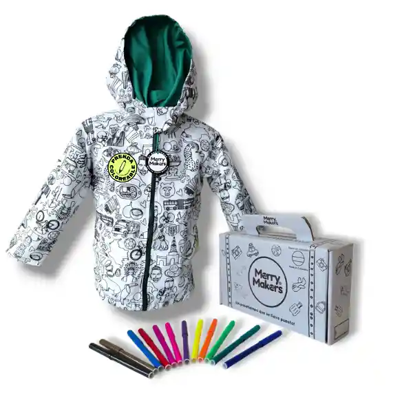 Contiene 14 Unidades. Chaqueta 1 Und + Plumones 12 Und + Caja 1 Und. Coloreable Doble Faz Con Estampado de Personajes y Cultura de Colombia. Colorea y al Lavar la Tinta Desaparece.
