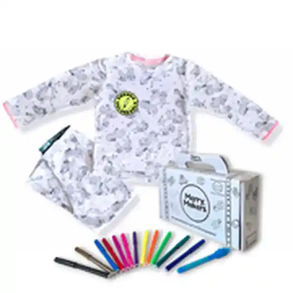 Contiene 16 Unidades. Camiseta Manga Larga 1 Und + Pantalón 1 Und + Plumones 12 Und + Marcador 1 Und + Lamparita 1 Und. Larga Con Estampado de Unicornios. Colorea y al Lavar la Tinta Desaparece. Con Marcador Mágico Con Tinta Invisible y Lamparita Uv Para Ver Brillar el Coloreado Secreto en la Oscuridad. Empacado en Caja Coloreable Lista Para Regalar. Material: Poliéster Algodón y Spandex Con Tacto Extra Suave.