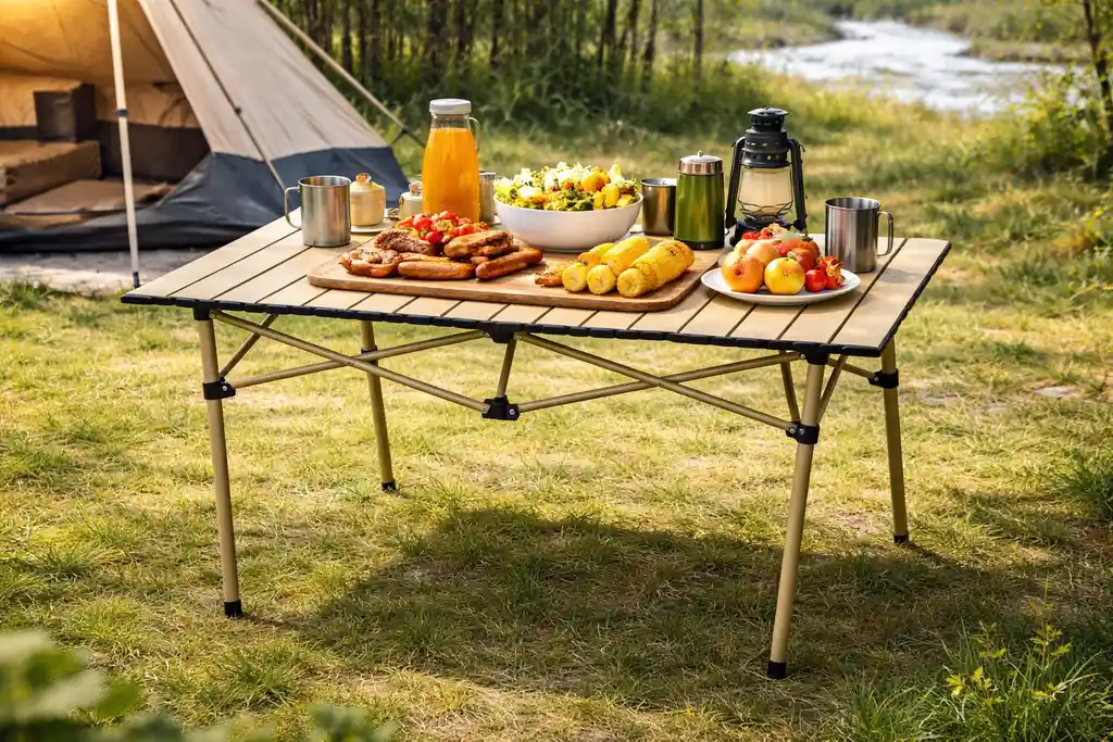 🏕️✨ Disfruta tus aventuras con mayor comodidad Mesa de camping plegable, práctica, resistente y fácil de transportar, ideal para picnics, camping, viajes o reuniones al aire libre. Su estructura estable y superficie amplia permiten colocar alimentos, bebidas y juegos sin problema. 🔹 Diseño plegable y portátil 🔹 Estructura resistente y estable 🔹 Ideal para camping, playa, picnic o jardín 🔹 Fácil de transportar y almacenar ¡Llévala a todas tus aventuras y disfruta al máximo cada momento!