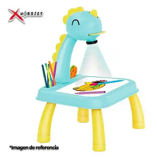 Incrementa la motricidad e imaginación de tu pequeño en casa, con esta hermosa y práctica mesa con proyector LED y sonido para dibujo. Increíble mesa con la que tus pequeños amarán el dibujo y tendrán una alternativa adicional para realizar sus dibujos con mucha más agilidad. NOTA: Las imágenes son de referencia, el estilo final es Dinosaurio, con el color seleccionado aplicado completamente a su cuerpo. CARACTERÍSTICAS: Podrás utilizarla en tres posiciones de trabajo: sin colocar las patas de soporte, colocando solamente las dos patas posteriores, o colocando las cuatro patas completamente. Funciona mediante 3 baterías AA (NO INCLUIDAS). Cuenta con 12 marcadores de colores para que tu niño pueda colorear el dibujo proyectado. Este hermoso juguete funciona con luz LED o luz y sonido simultáneos. Ajuste hacia la izquierda para cambiar los modos. Hacia la derecha completamente podrás apagarlo. Podrás limpiar fácilmente la zona de trabajo con el paño incluido y un poco de agua rociada. Juguete ideal para niños mayores de +3 años. Gira y ajusta el proyector (contrario a las manecillas del reloj), para mejorar la definición del dibujo a ilustrar. Con su cabeza retráctil situarás el proyector para una mejor posición de dibujo. Gracias a sus 6 agujeros podrás utilizarlos para organizar los marcadores que estés utilizando actualmente para el dibujo. Con sus dos ranuras lograrás organizar los proyectores adicionales que incluye el producto. ESPECIFICACIONES: Dimensiones: Área Trabajo: 22cm x 16cm. Armado: 14cm x 29,5cm x 23cm. Alto hasta la cabeza: 38cm Peso: 517g Material: Plástico. INCLUYE: 1 Mesa. 1 Dinosaurio proyector. 4 Patas/Soportes para mesa. 12 Marcadores. 1 Bloc con hojas blancas (10 hojas aprox). 3 Rollos con imágenes (8 imágenes cada uno). 1 Paño Limpiador.