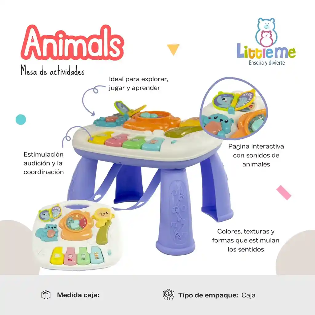 "Mesa de actividades Interactiva 3en1 con luces y sonidos, animales divertidos. Tres formas diferentes de usar, mesa de juego, colgar en la cuna, o forma portátil Piano con 4 teclas de notas musicales, divertido reloj de juguete con sonidos y melodías pregrabadas que se activan al girar la manecilla Función de pasar la pagina con sonido de animales y atractivas imágenes. Estimula el desarrollo sensorial las habilidades cognitivas y el sentido de exploración"