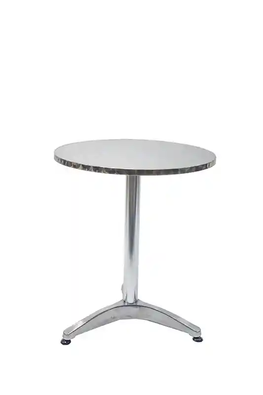 Base y Tubo Fabricados en Aluminio * Superficie Superior en MDF recubierta con Acero Inoxidable* Ancho: 60 cm * Altura: 70 cm * Profundidad: 60 cm * Para: 4 Personas * Uso Exterior
