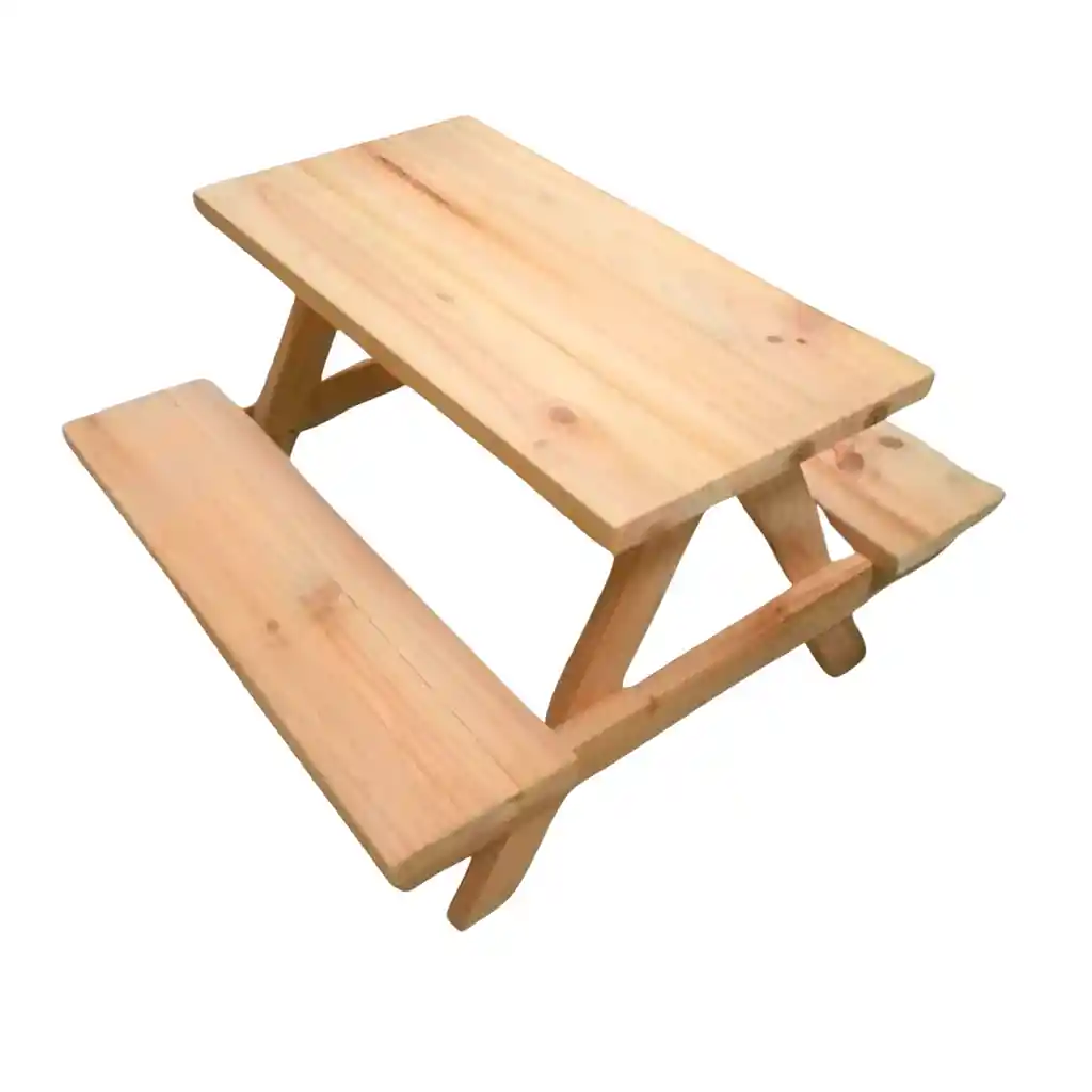 Hermosa mesa de picnic para niños color natural elaborada en madera maciza de pino 85x90x55