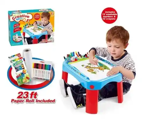 MESA EDUCACIONAL APRENDE Y PINTA INCLUYE PAPEL Y MARCADORES .