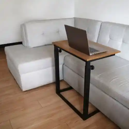Mesa Lamda folding, altura ajustable y totalmente plegable. Su práctico diseño en L brinda comodidad y permite su uso en diferentes lugares del hogar. Armoniza tus espacios con una mesa elegante, funcional y práctica. Dimensiones: Altura: 65-85 cm Superficie: 63×45 cm