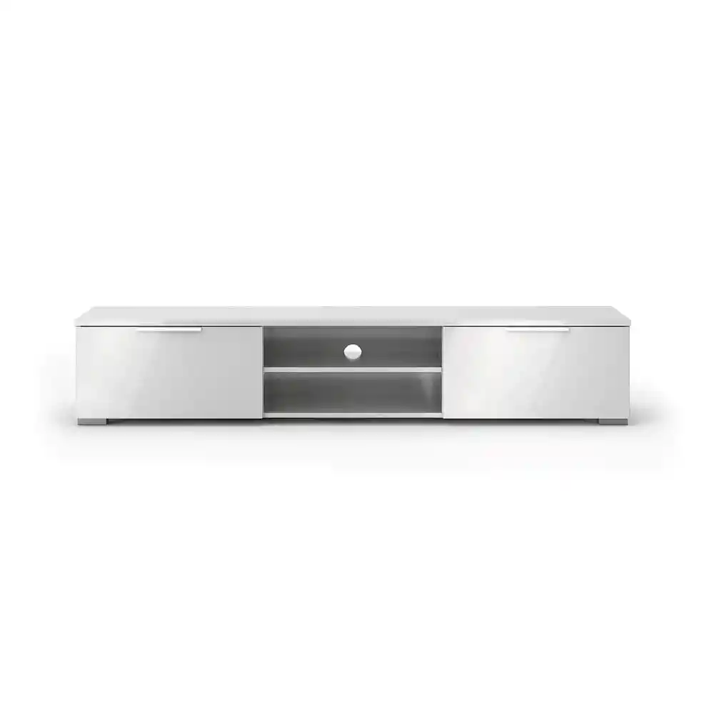 Match de Tvilum es un mueble de televisor simple y atractivo tan funcional como vistoso. Match tiene dos baldas para distintas consolas/reproductores, así como dos prácticos cajones. Medidas: Fondo 39,90 cm Alto 33,10 cm Ancho 172,70 cm Color: Blanco brillante