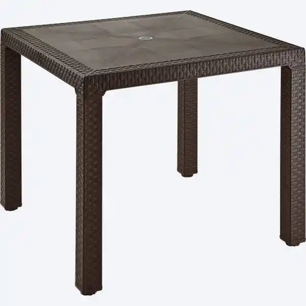 Mesa Cuadrada de 80cms y 70 Cms de altura; ideal para uso como comedor para 4 puestos. Patas cuadradas , que brindan elegancia y una línea de diseño única. De apariencia Rattan y colores clásicos y elegantes; ideal para usos interiores o exteriores, práctica, fácil de limpiar y con todos los beneficios del plástico.