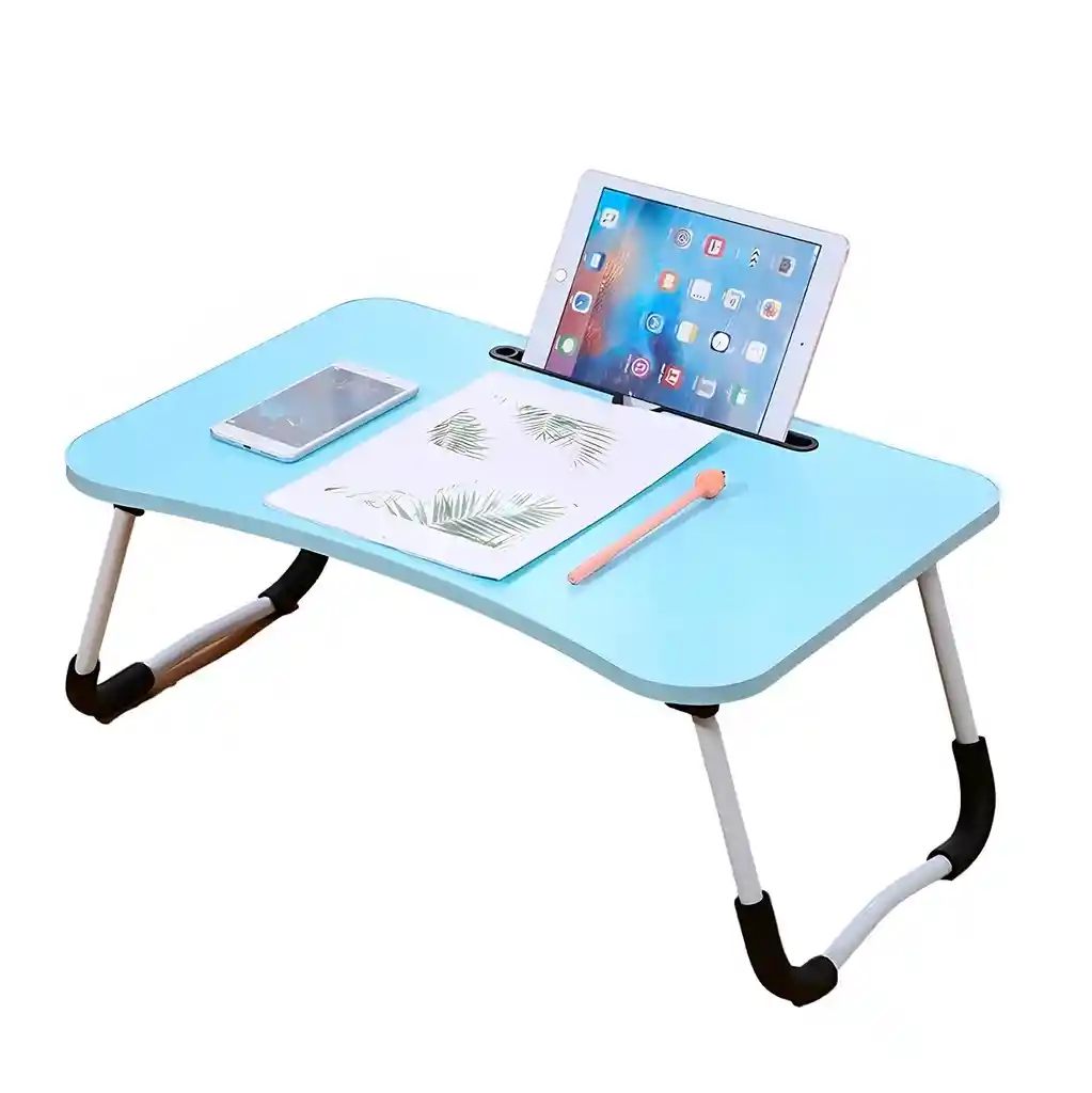 Esta mesa plegable multifuncional es la solución definitiva para quienes buscan comodidad y versatilidad mientras trabajan, estudian o disfrutan de un desayuno en la cama o el sofá. Diseñada con una estructura ergonómica y ligera, cuenta con una superficie de madera suave y patas metálicas reforzadas con gomas antideslizantes que garantizan estabilidad y protegen sus muebles de rayones. Incluye una práctica ranura de soporte para tableta o celular, permitiéndole mantener sus dispositivos en el ángulo de visión perfecto de manos libres. Su sistema de plegado ultra compacto facilita el almacenamiento en espacios reducidos y su transporte sin esfuerzo, convirtiéndola en el accesorio indispensable para optimizar su productividad y confort en cualquier rincón de su hogar. FICHA TÉCNICA Producto: Mesa Plegable Multiusos Material del Tablero: Madera MDF de alta calidad Material de la Estructura: Tubos de acero con recubrimiento de polímero Dimensiones del Tablero: 60 cm de largo x 40 cm de ancho Altura: 28 cm aproximadamente Diseño de Patas: Forma de U con protectores antideslizantes de espuma EVA Accesorios: Ranura de soporte para Tablet o Smartphone integrada Capacidad de Carga: Soporta hasta 15 kg Peso del Producto: 2.1 kg Características: Bordes redondeados de seguridad, impermeable y fácil de limpiar Garantía: 1 mes por defectos de fábrica POLÍTICA DE GARANTÍA Y RETRACTO Este producto cuenta con 1 mes de garantía únicamente por defectos de fabricación (como piezas sueltas de origen o fallas en el mecanismo de plegado); no aplica garantía por golpes, rayones en la madera por objetos cortantes o rotura de patas por sobrecarga de peso excesiva. Dispone de máximo 5 días para reportar novedades (daños de transporte o piezas faltantes). Para cualquier devolución por retracto, el producto debe entregarse en su empaque original en perfecto estado y sin señales de haber sido utilizado.