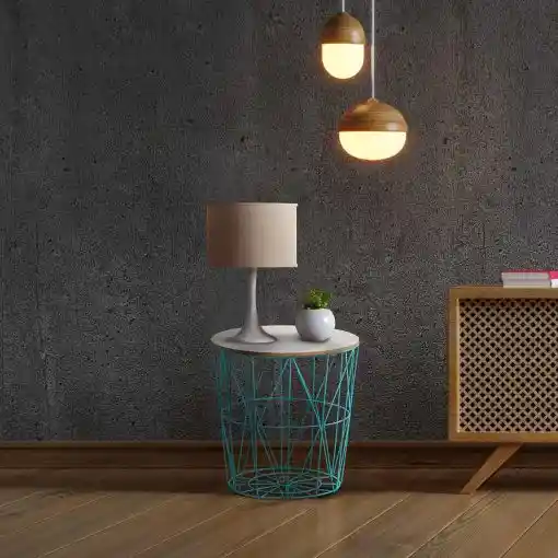 Mesita Auxiliar Redonda Subachoque, dale un toque moderno a las estancias de tu hogar. Una pieza decorativa a la par que funcional que quedará ideal la coloques donde la coloques. Perfecta para salones, comedores, dormitorios, recibidores y pasillos. Búscale un lugar especial, te aseguramos que se convertirá en el centro de todas las miradas. Este modelo de mesita de centro está diseñada con un tablero de madera en color natural que se apoya sobre una base metálica de finas barras que se enlazan entre sí creando una estructura diferente. Opciones para todos los gustos. Sus atractivas líneas le aportarán a las estancias un toque muy personal. Storage es una pieza de última tendencia que cualquier amante del interiorismo quisiera tener. Podrás utilizarla como soporte para tu lamparita de mesa, tus velas decorativas o tus marcos de fotos. Además, gracias a su tapa extraíble te permitirá almacenar en su interior mantas, revistas o cualquier otro trasto que tengas por medio en tu comedor. Esta mesa cesta auxiliar encaja perfectamente en ambientes de estilo rústico, nórdico o industrial. Para eliminar la suciedad de su superficie te recomendamos que emplees una gamuza seca y evites el uso de productos químicos que puedan dañarla. Gracias a sus materiales esta mesita auxiliar puede reciclarse o reutilizarse. Déjate cautivar por nuestro modelo Storage.