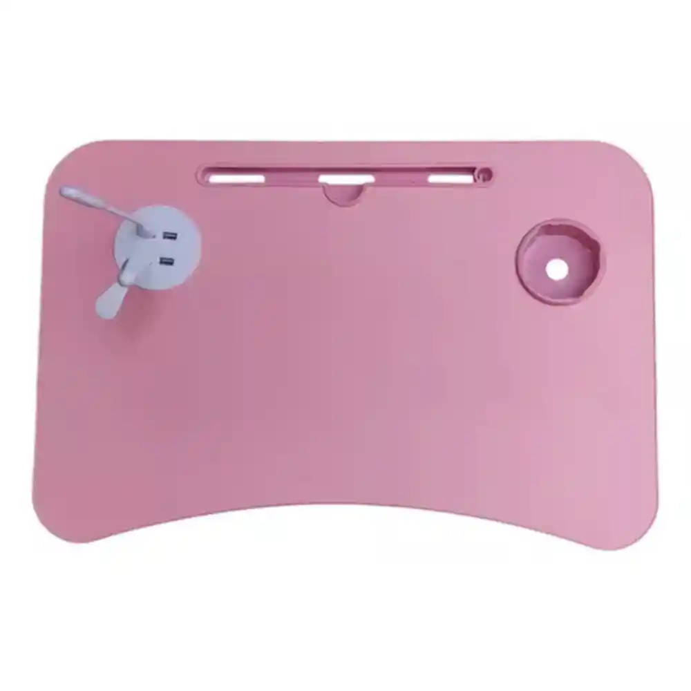 Escritorio Portátil Extragrande para Computadora Portátil con USB, Ventilador y Luz – Diseñado para máxima comodidad y funcionalidad, este escritorio plegable es ideal para trabajar desde la cama, el sofá o cualquier espacio. Su superficie extragrande permite acomodar computadoras portátiles de gran tamaño, libros y otros accesorios sin problemas. Incluye un puerto USB incorporado, un ventilador de refrigeración para evitar el sobrecalentamiento del portátil y una luz LED ajustable para mejorar la visibilidad en cualquier entorno. Además, cuenta con un portavasos integrado, patas plegables para fácil almacenamiento y un diseño ergonómico que favorece una postura cómoda. Perfecto para estudiar, trabajar o disfrutar de entretenimiento con total comodidad.