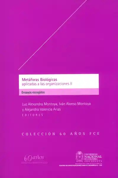 Metáforas Biológicas Aplicadas a Las Organizaciones Ii. Ensayos Escogidos es el Esfuerzo de un Grupo de Profesores Invitados al Seminario Del Mismo Nombre y de Los Estudiantes Del Programa Curricular de la Maestría en Administración de la Universidad Nacional de Colombia. Este Grupo de Ensayos Presenta Diferentes Metáforas de Comportamientos Biológicos Aplicados a Las Empresas y Organizaciones. ISBN: 9789587757842